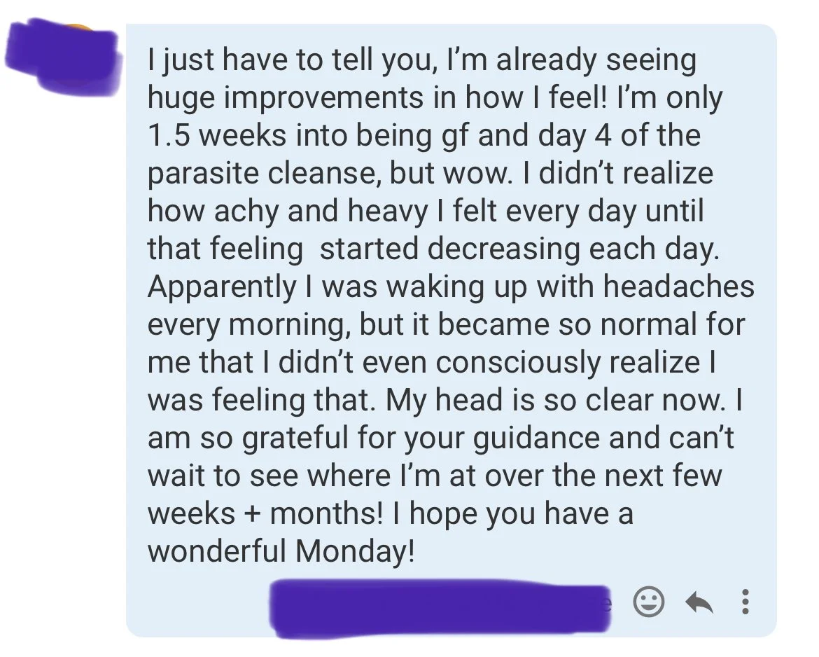 Includes 2 functional labs, ten 1:1 sessions, a 74 page hard copy Guided Healing Workbook, a Welcome Box, and 6 months of unlimited chat support in our HIPAA compliant portal.